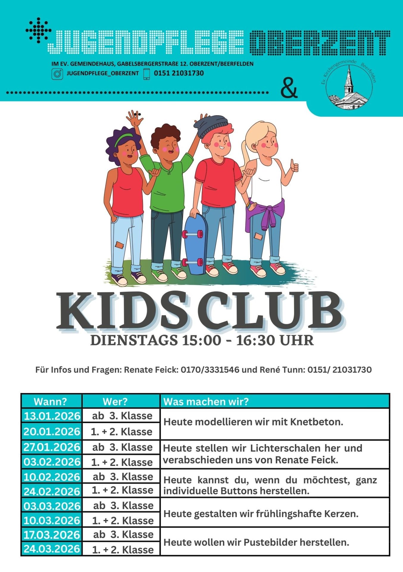 Die Öffnungszeiten sowie Informationen zu aktuellen Veranstaltungen und Angeboten bekommt Ihr direkt bei mir. Außerdem stehen sie hier auf unserer Homepage und in der „Oberzent Aktuell“. Angebote für euch werden außerdem auf Flyern und Plakaten in jedem Stadtteil an verschiedenen Orten aufgehängt.