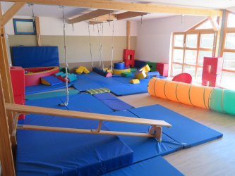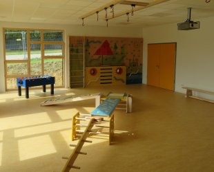 Zwei Bewegungsräume mit „Motorik-Zentrum“ bieten den Kindern grundlegende Fördermöglichkeiten im motorischen Bereich. Wert wird auf ein ausgewogenes und abwechslungsreiches Frühstück gelegt.