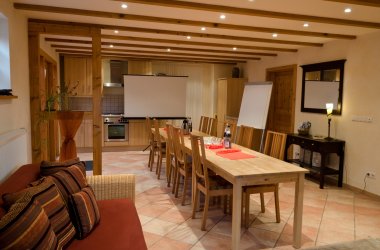 Im Rahmen der Unterkünfte bieten wir einen entsprechend der Gruppengröße angepassten Aufenthaltsraum zum Treffen, gemeinsamen Essen und gemütlichen Zusammensitzen.